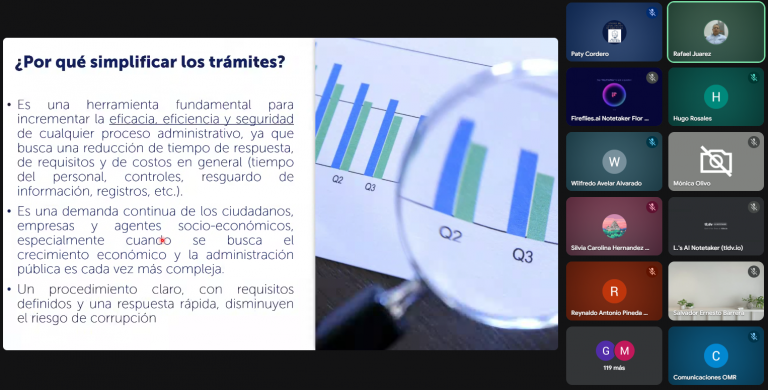 Desarrollamos capacitación sobre Metodologías para la medición de los costos administrativos de los trámites, contando con la participación de más de 130 representantes de diversas instituciones. Agradecemos la asistencia de representantes de Secretaría de Comercio e Inversiones, Ministerio de Agricultura y Ganadería (MAG), Ministerio de Gobernación y Desarrollo Territorial (MIGOBDT), Ministerio de la Defensa Nacional (MDN), Ministerio de Medio Ambiente y Recursos Naturales (MARN), Ministerio de Relaciones Exteriores (MRREE), Ministerio de Trabajo y Previsión Social (MTPS), Academia Nacional de Seguridad Pública (ANSP), Agencia de Promoción de Exportaciones e Inversiones de El Salvador (Invest in El Salvador), Banco de Fomento Agropecuario (BFA), Caja Mutual de Empleados del Ministerio de Educación (CAJAMINED), Centro Nacional de Registro (CNR), Centro Nacional de Tecnología Agropecuaria y Forestal (CENTA), Comisión Ejecutiva Portuaria Autónoma (CEPA), Consejo de Vigilancia de la Profesión de la Contaduría Pública y Auditoria (CVPCPA), Consejo Nacional de Calidad (CNC), Consejo Salvadoreño de Agroindustria Azucarera (CONSAA), Corporación Salvadoreña de Turismo (CORSATUR), Corte de Cuentas de la República (CCR), Cuerpo de Bomberos de El Salvador (CBES), Dirección General de Aduanas (DGA), Fondo de Conservación Vial (FOVIAL), Fondo Nacional de Atención a Víctimas de Accidente de Tránsito (FONAT), Instituto de Garantía de Depósitos (IGD), Instituto de Previsión Social de la Fuerza Armada (IPSFA), Instituto Diplomático “Doctor José Gustavo Guerrero” (IDG), Instituto Nacional de los Deportes de El Salvador (INDES), Instituto Salvadoreño de Bienestar Magisterial (ISBM), Registro Nacional de las Personas Naturales (RNPN), Superintendencia de Regulación Sanitaria (SRS), Superintendencia del Sistema Financiero (SSF), Tribunal de Ética Gubernamental (TEG), Universidad de El Salvador (UES), Municipalidades de Cabañas Oeste, Cuscatlán Norte, Cuscatlán Sur, La Libertad Costa, La Libertad Norte, La Paz Oeste, Morazán Norte, San Miguel Norte, San Salvador Centro, San Salvador Este, Sonsonate Oeste