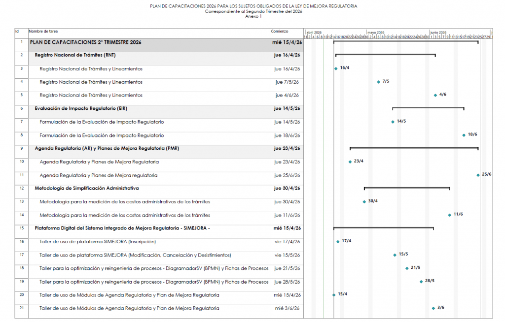 Plan de Capacitación para los Sujetos Obligados de la Ley de Mejora Regulatoria